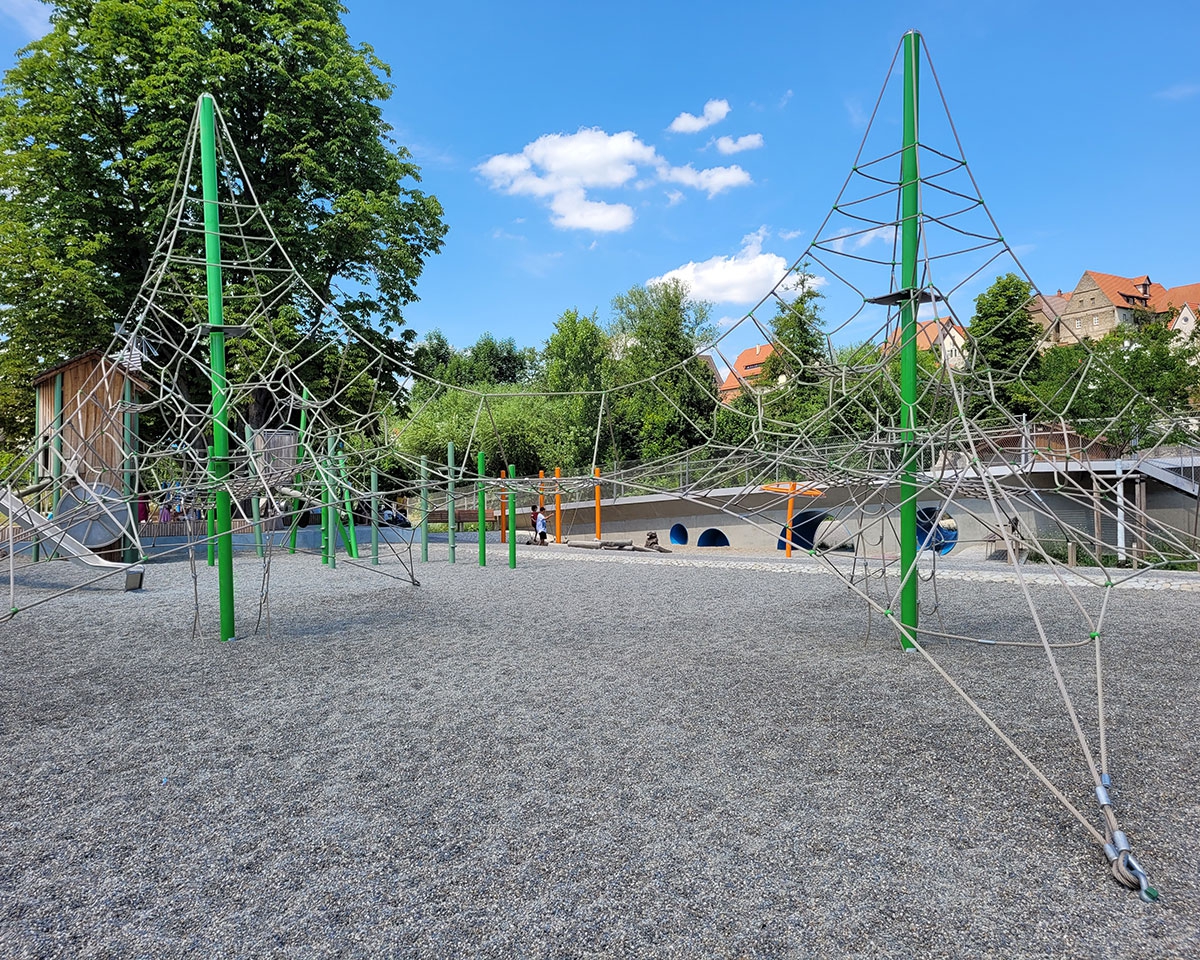 The connection area is out of an area net, over that the ridge rope goes. The outcome is a new play area, the kids preferable this area to play on.