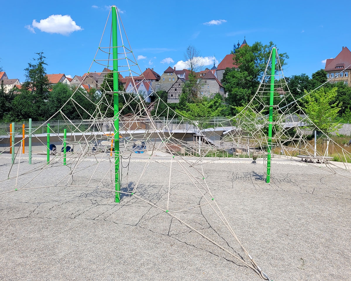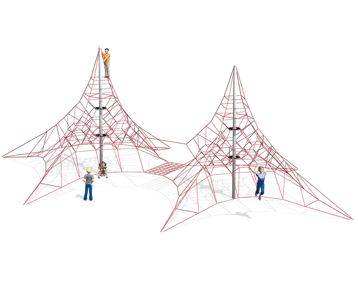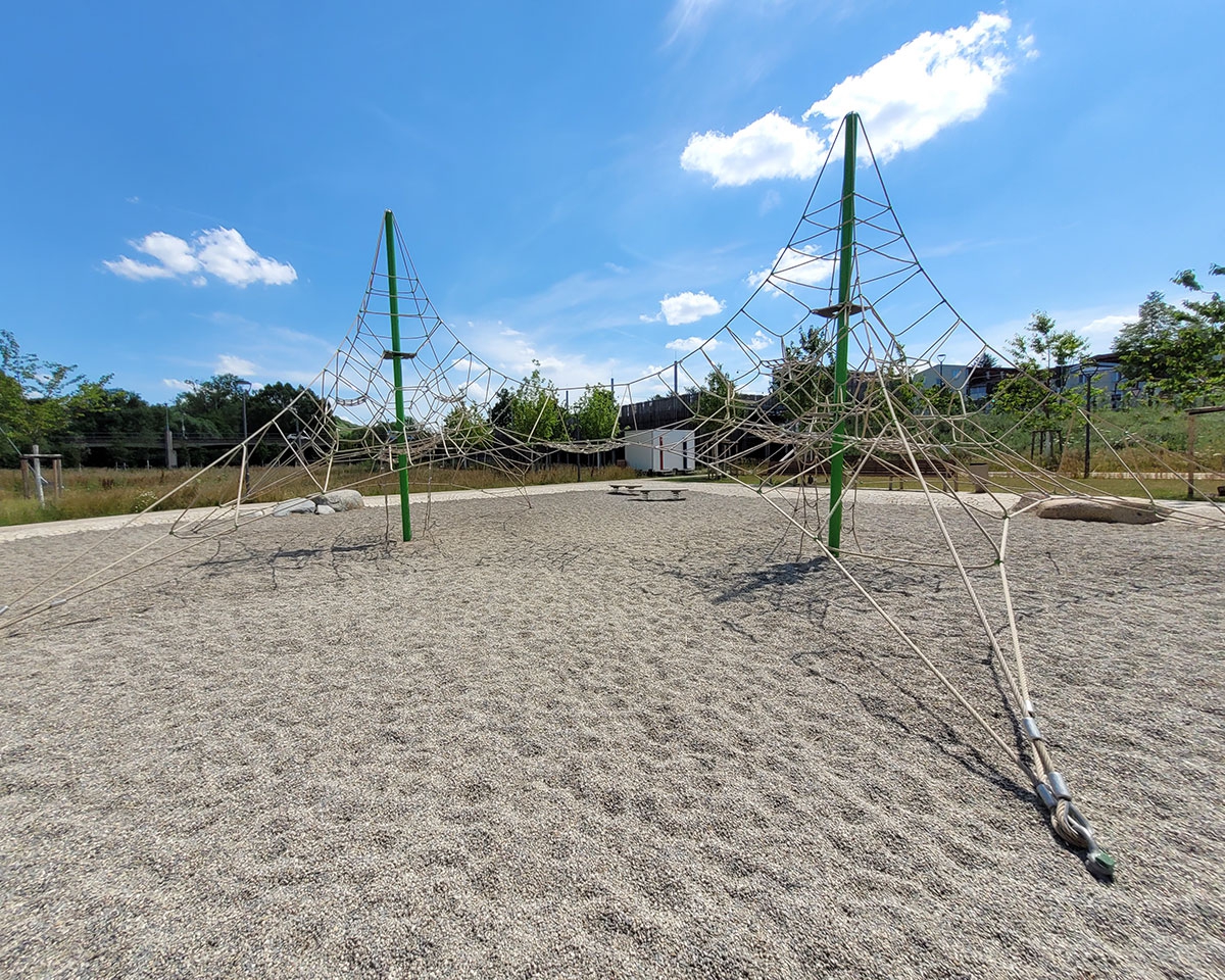 Die Verbindung stellt ein Flächennetz dar, über das das Firstseil läuft. Es entsteht ein Spielbereich, der von den Kindern vorzugsweise genutzt wird.