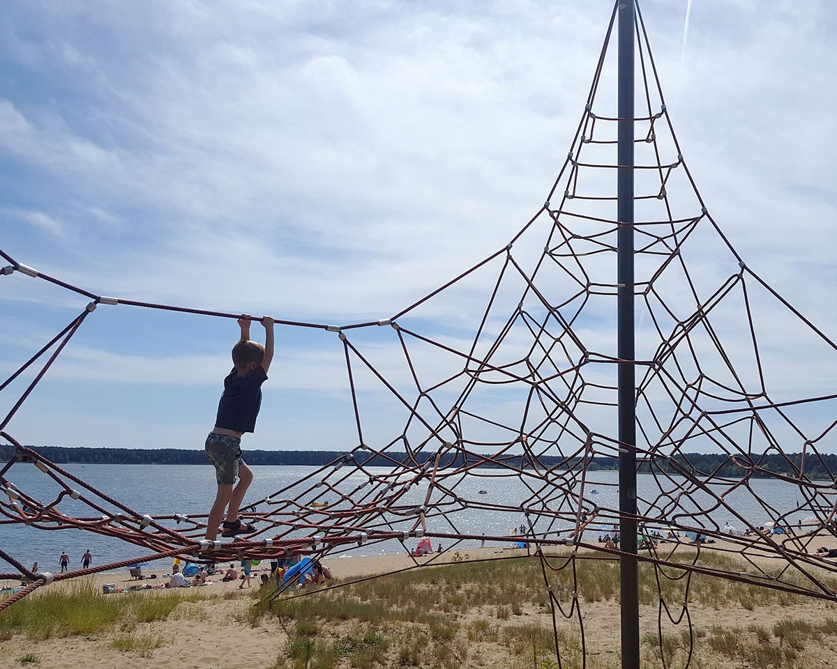 Das Firstseil bietet sich als Reckstange zu turnerischen Übungen an. Danach kann man sich im Flächennetz ausruhen, unterhalten und man lässt sich wippen und wiegen.