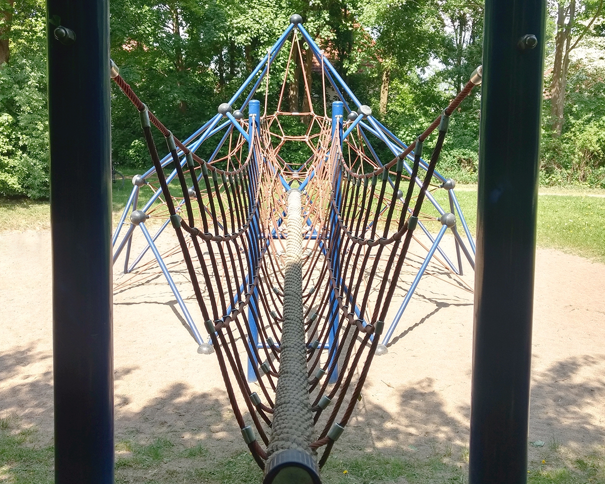 Das Grundgerät, die Dufourspitze, wird durch die 6,00 m lange Dschungelbrücke zur Dufourspitze Variante 1 und zu einem wahrhaftigen Spielerlebnis. Über die leicht schwankende Brücke in den oberen Teil des Gerätes zu gelangen, übt einen besonderen Reiz aus.