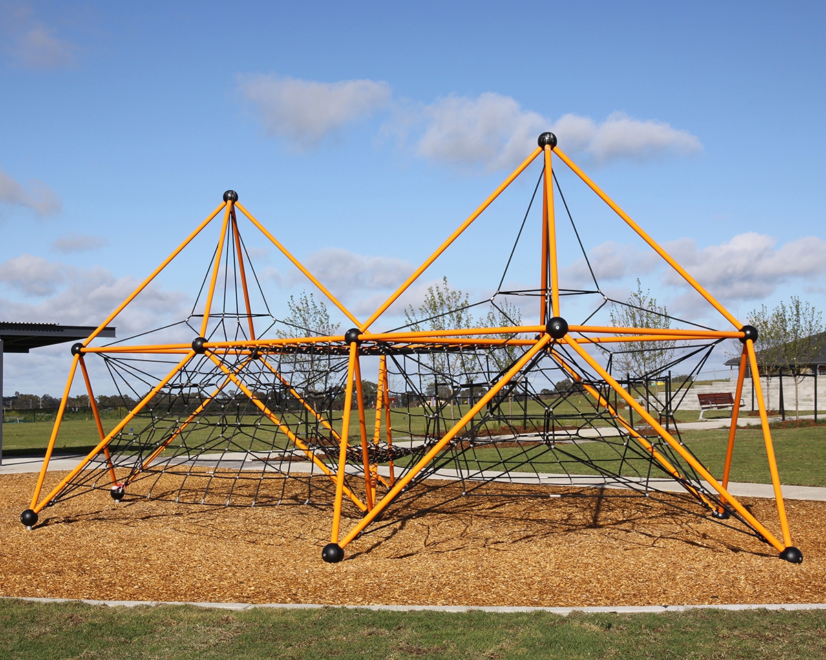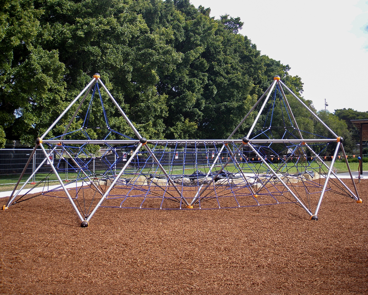 Climbing nets lead up from below on both sides.