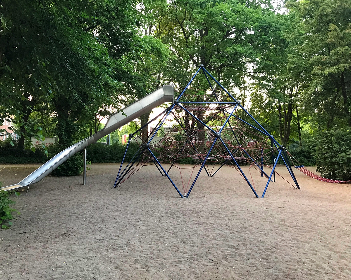 Eine Rutsche mit einer Bockhöhe von 3,50 m, die Hängematten-Schaukel und das 2,00 m lange Hangel-Schlaufenseil ermöglichen ein abwechslungreiches Spielen.