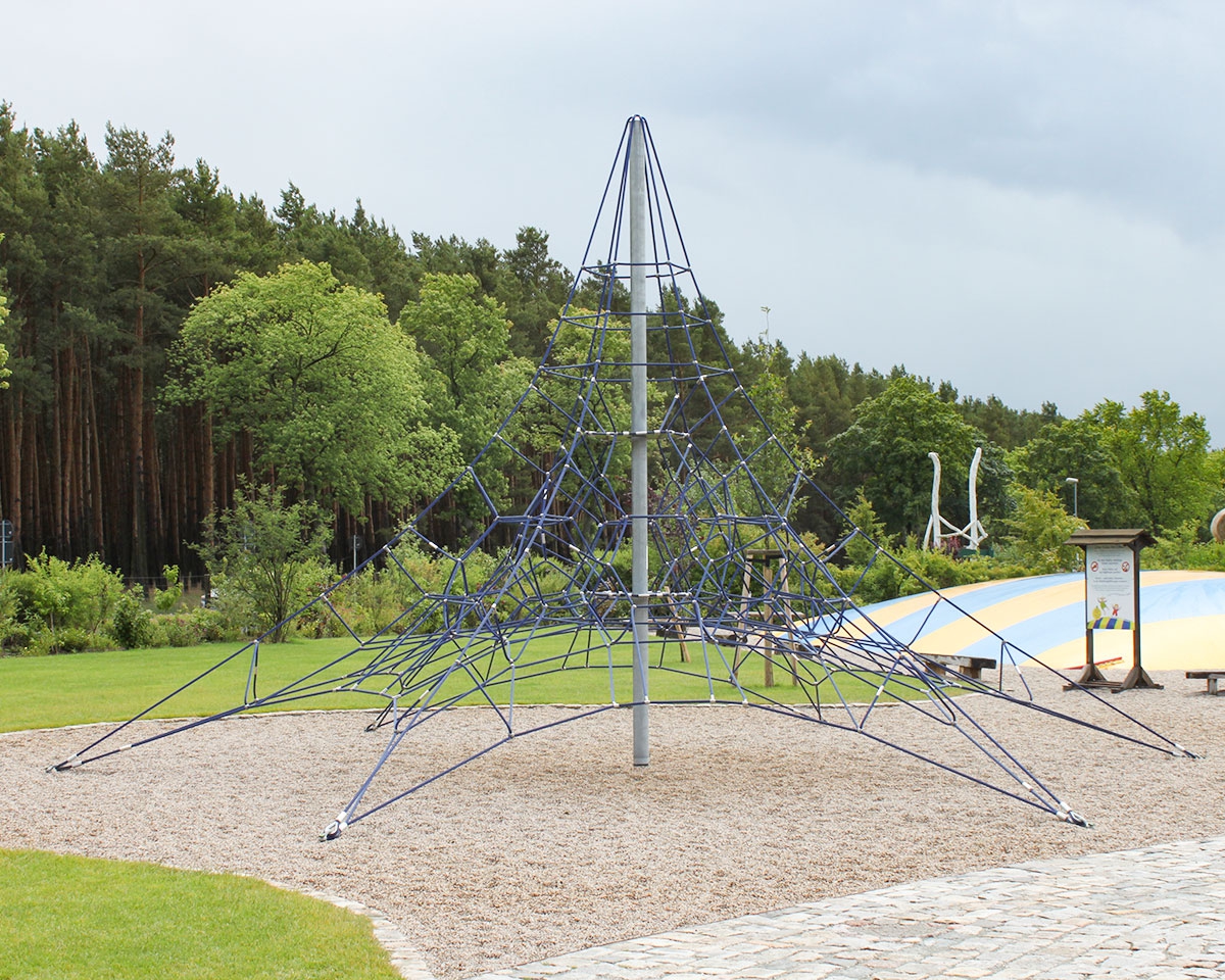 Through the raised number of bracings does the mast not swing as much and also are the mesh sizes smaller, which makes this netclimber also well suited for small children.