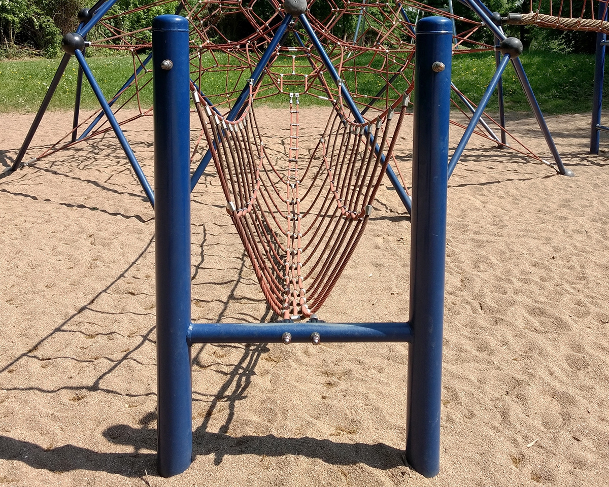 Trittseile: 3 nebeneinanderlaufende Seile, verpresst mit robusten Aluminium-Kugelknoten: