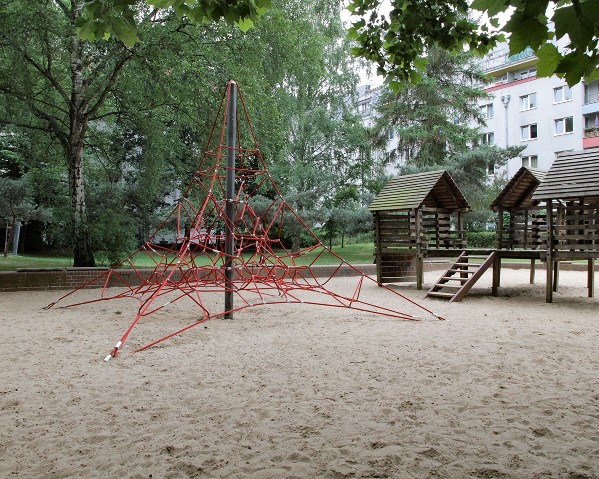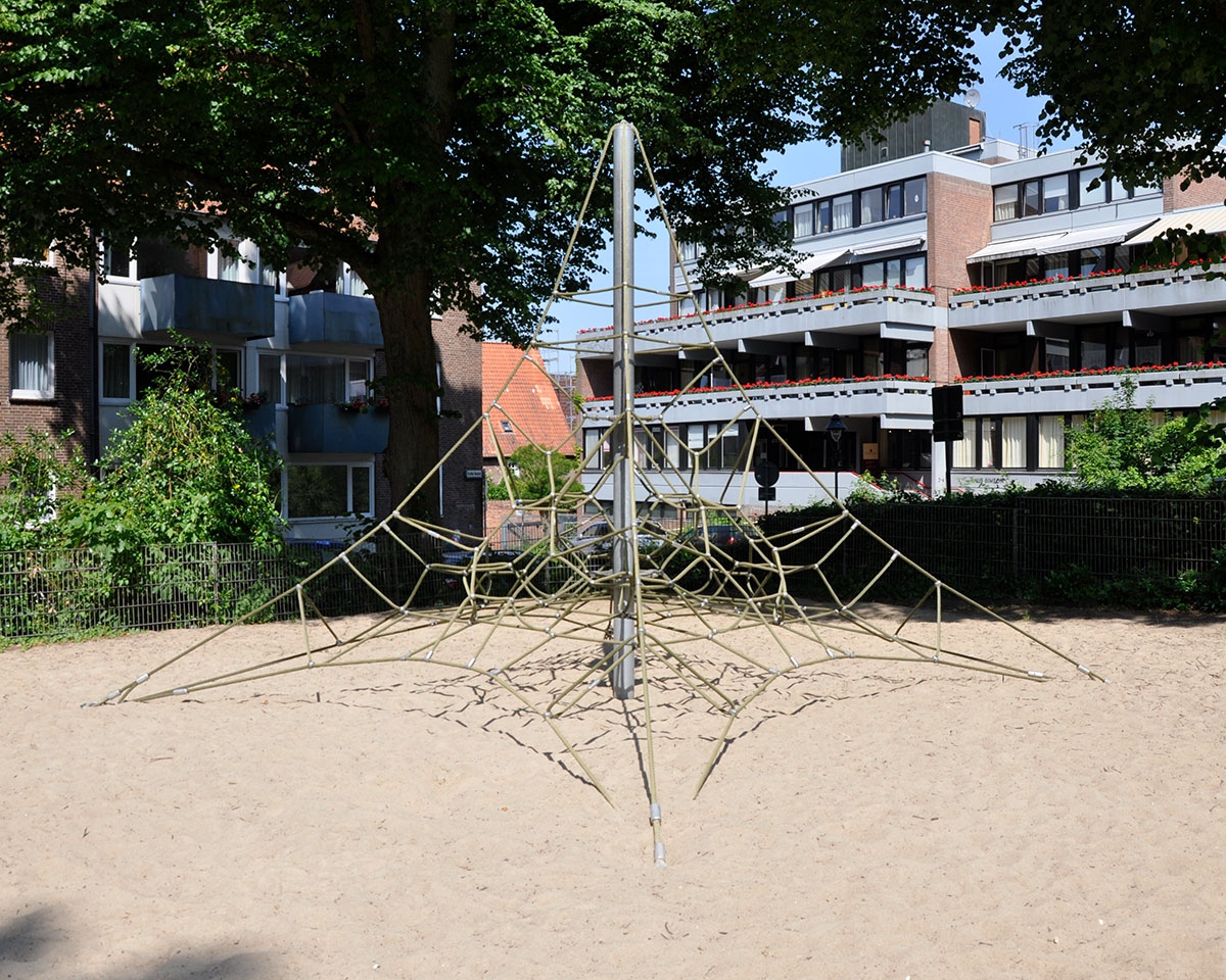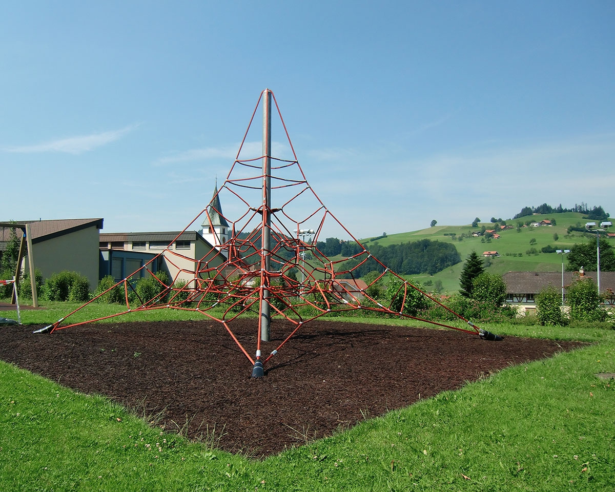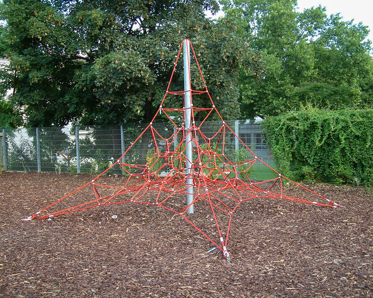 Die ersten Kletterkünste können erprobt werden. Die geringen Höhen, die engen Raumnetzmaschen, das nicht zu starke Schwanken des Mastes nehmen Ängstlichkeit und Scheu.